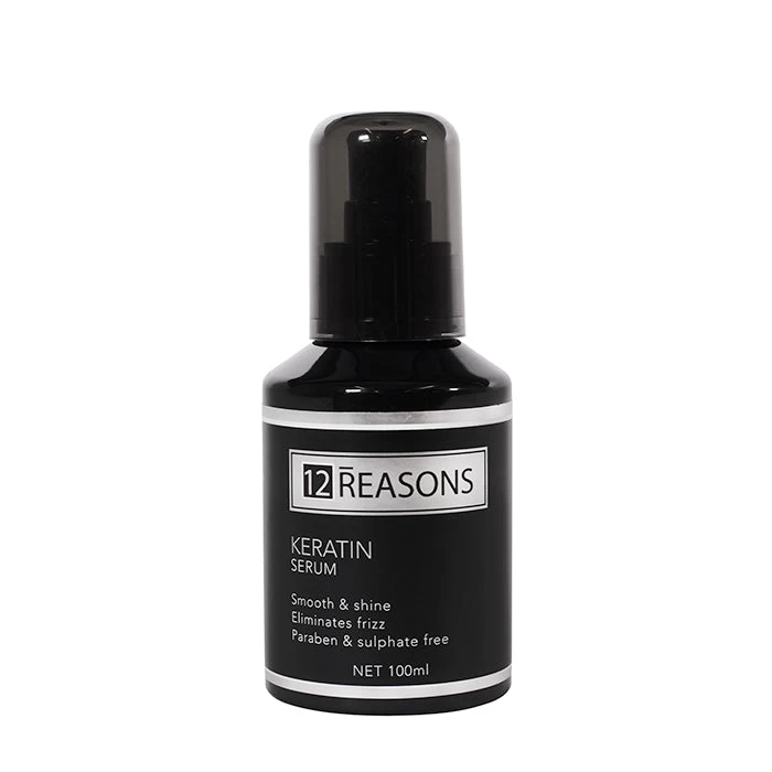 12 Reasons Keratin Hair Serum smooths and adds shine to damaged and over processed hair to help prevent frizz. Formulated with Hydrolysed Keratin which is rich in Amino Acids to protect and fortify damaged hair. Macadamia Oil brings softness and shine back to dull and damaged hair. Hair is given gorgeous shine in no time!