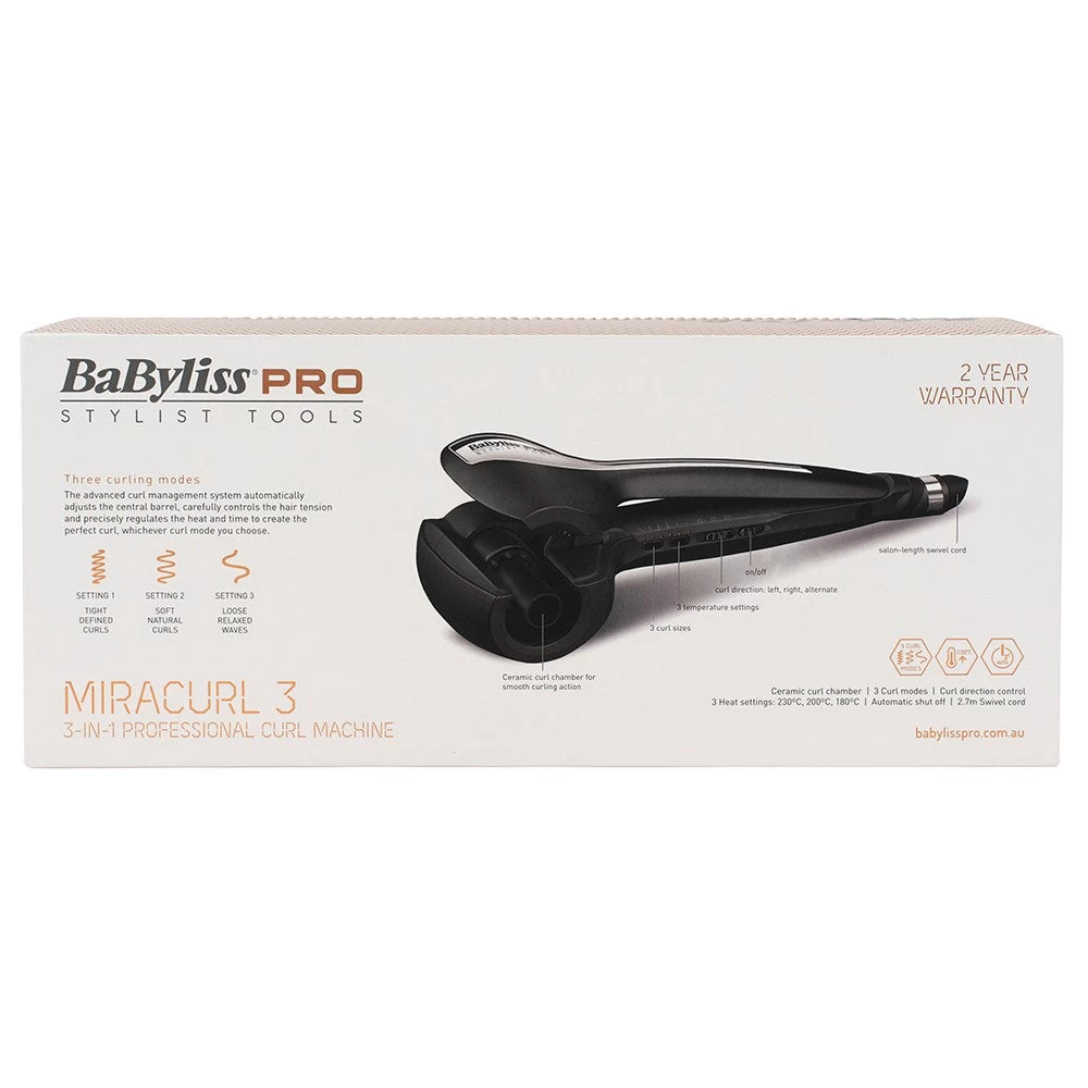 Produce and maintain high-quality curls with BaBylissPRO MiraCurl 3-in-1 machine. It helps you achieve tight defined curls with the easiest styling. It has three different heat settings to enhance curl improvement on all types of hair. Babyliss Miracurl has a safety clutch function to wind down and stop.