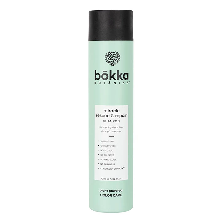Bokka Botanika Rescue & Repair Miracle Shampoo gently cleanses, nourishes and strengthens damaged or fragile, color treated hair. Miracle Rescue & Repair Shampoo is formulated with Quinoa Protein, Soy Protein and Guarana Seed Extract to help restore hair and add tremendous shine.