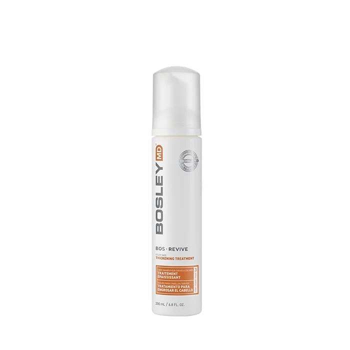 BosRevive Leave-In Thickening Treatment is uniquely formulated for those who want to help restore visibly thinning hair. Designed to help inhibit DHT, this lightweight, foaming, alcohol-free intensive treatment may aid in rejuvenating the scalp and help support the growth of stronger, healthier hair. Pumpkin Seed Extract and Soy Proteins, natural DHT-blockers, combine with Apple Stem Cell Extract and Panthenol to help reduce scalp inflammation, increase scalp circulation and strengthen the hair to promote healthy hair growth. May assist in thickening hair, reconditioning fragile hair and provide instant volume.
