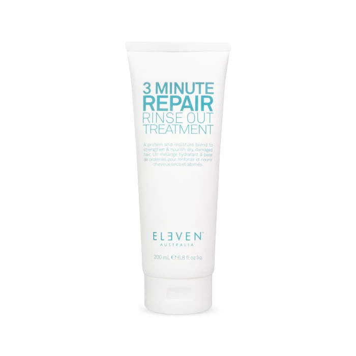 Eleven Australia 3 Minute Rinse Out Repair Treatment is suitable for all hair types, including straight, wavy and curly. However, anyone with dry, damaged hair and colour-treated hair will experience the most noticeable outcome. The spellbinding effects are accomplished through a protein and moisture blend, which strengthens and hydrates the hair internally.Â