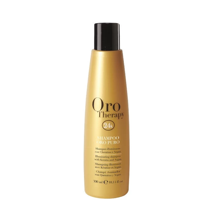 Fanola Oro Therapy Argan Oil Shampoo is an illuminating shampoo with Argan oil, enriched with Micro-Active Gold and Sweet Cyprus Oil. It cleanses hair gently, making it light, soft and shiny.