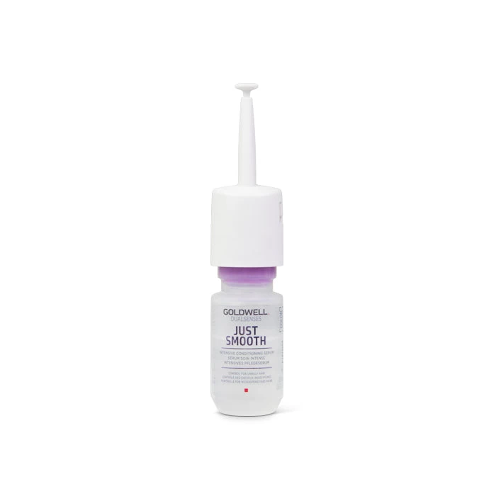 Goldwell Dualsenses Just Smooth Intensive Conditioning Lock Serum is an instant solution for your client that needs help taming their frizzy unruly hair or after using any keratin or straightening services. This product will tame the unruly, unmanageable hair and will last for up to one week of smooth, frizz control.
