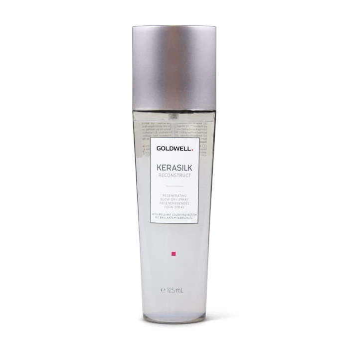 Goldwell Kerasilk Reconstruct Regenerating Blow-Dry Spray is a light instant spray with two phases liquid for care and shine. Ultimately detangles and repairs your hair and gives you a soft weightless feel. This product provides heat protection and as a leave in treatment will help repair and rejuvenate dry damaged hair.