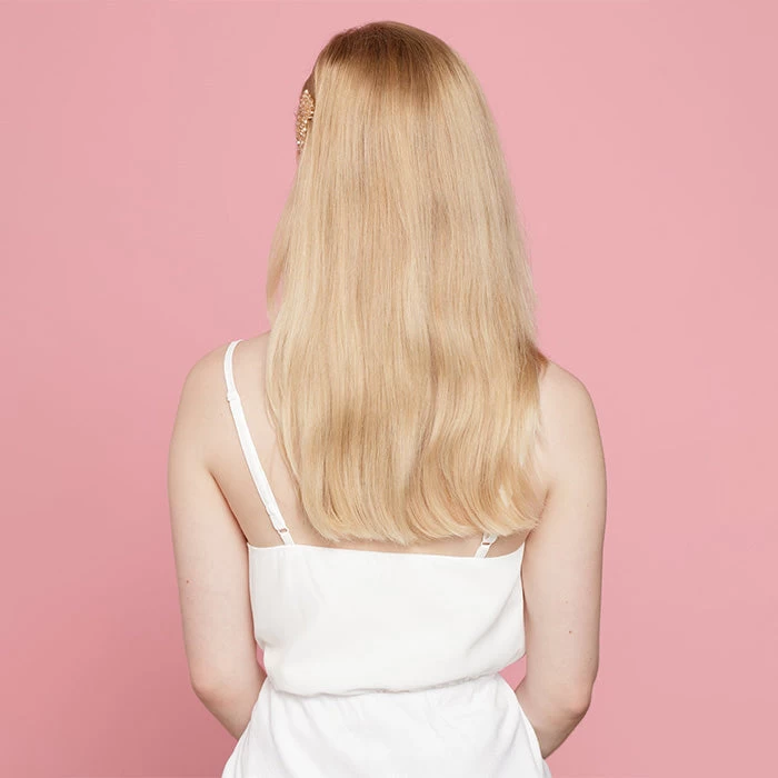 Aria is a vibrant golden blonde that’ll have you beaming in all lighting with it’s warm undertones and subtle hints of platinum blonde running throughout. This shade has the ability to be toned to appear brighter with a violet shampoo.
