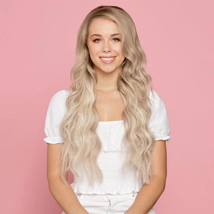 Aurora is the lightest shade in the balayage range is. Aurora starts with a light toffee brown, blending into a platinum blonde mixed with warm and cool undertones. This shade has the ability to be toned to appear brighter with a violet shampoo.