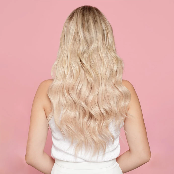 Piper is the perfect concoction of Lola and Kylie. The colour begins with a walnut brown for the roots which melts into a sandstone blend of blonde tones which can have a subtle iris fleck in some lights. Piper has a cool undertone. This shade has the ability to be toned to appear brighter with a violet shampoo.