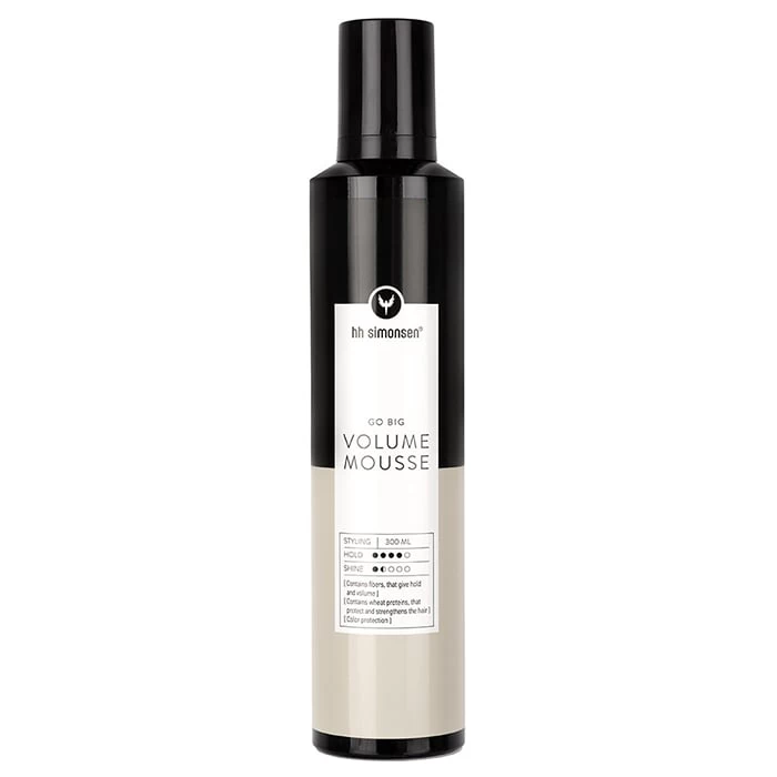 Styling is bigger and better with HH Simonsen. HH Simonsen Volume Mousse is a luxurious mousse designed to add volume and texture to every hair type, while still keeping hair light and flowy. Infused with innovative fibres which build up around the hair, making hair look and feel thicker and fuller, as well as providing moderate to strong hold.