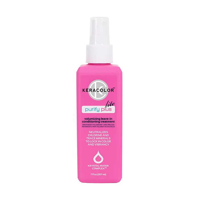 Neutralise chlorine and trace minerals to lock in colour and vibrancy with Keracolor Purify Plus Light Volumising Leave In Conditioner. Designed for use on fine-medium hair. Keracolor Purify Plus Light contains a lightweight styling aid to create weightless volume and Krystal Water Complex which neutralises trace minerals and chlorine found in tap water for vibrant colour and shine. Keratin helps to strengthen hair. Designed for use with all Keracolor Clenditioner Shampoos.