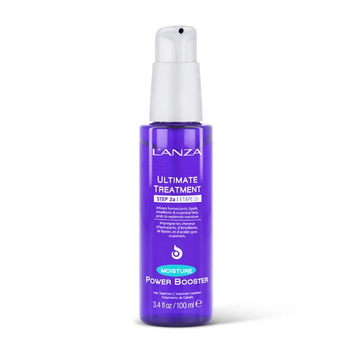 LANZA UT Power Booster Moisture is the ultimate hydrating treatment for struggling hair. Designed as step 2a of the LANZA In-Salon Customised Healing Service, this formula is powerful enough to be used in professional services. The product works with LANZA Ultimate Treatment Step 2 Deep Treatment to create moisturised and healthier strands that reduce dryness.