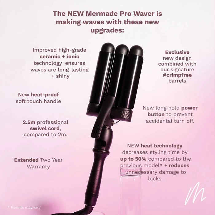 - Crimp-free design – Mermade PRO has its own exclusive design to create beautiful ripple, boho or beach waves that will not leave any crease or /crimped/ look.