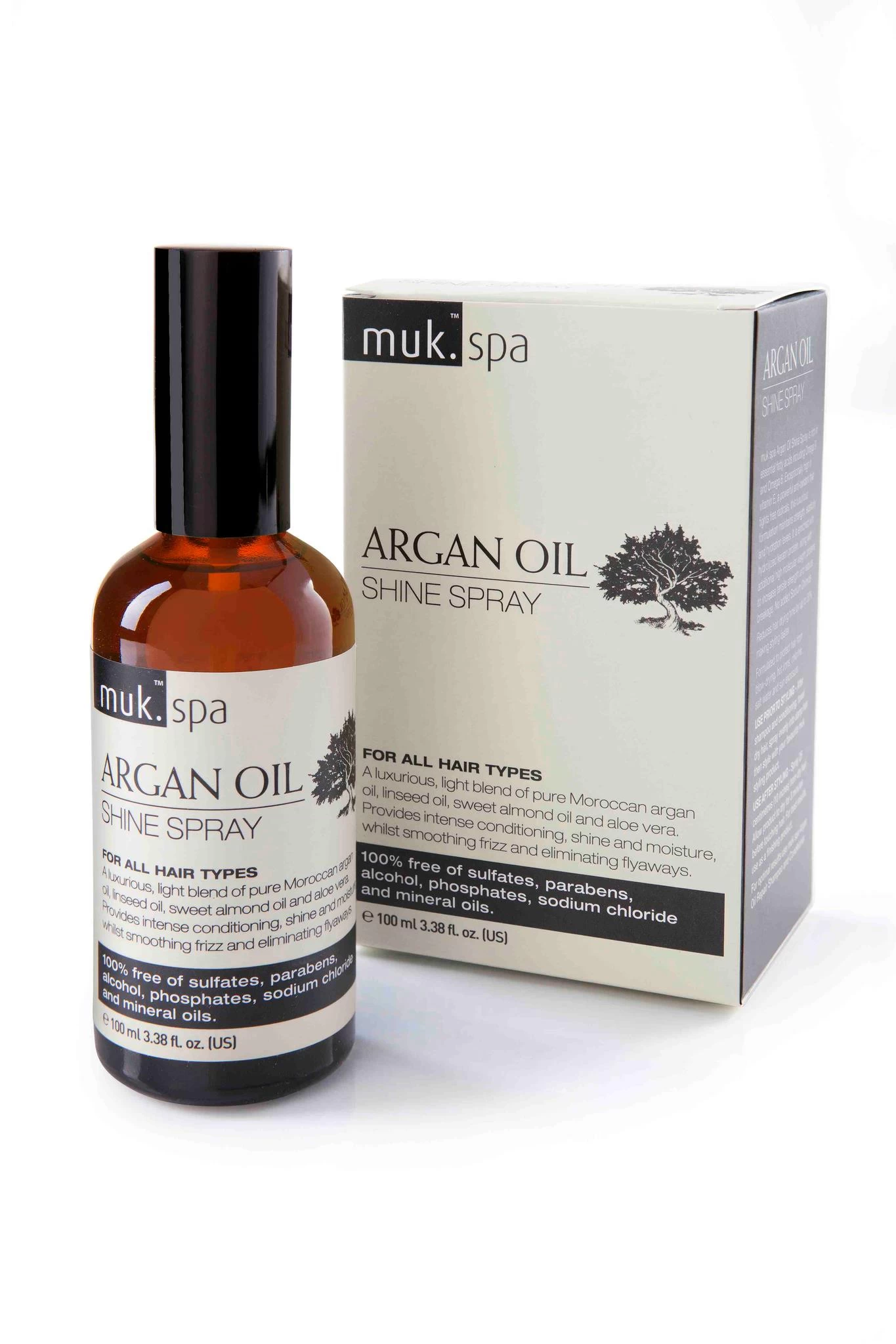 Muk Spa Argan Oil Shine Spray is a light shine spray for all hair types.