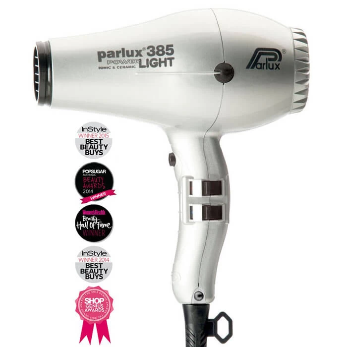 Parlux 385 Powerlight Dryer 2150W Silver is a super-fast hair dryer for every professional hairstylist. Its 480g ultra-lightweight, and 2,200 hours lifespan makes it great for blow-drying. It is built with the powerful long-lasting K Laminator Motor by Ciaramella.