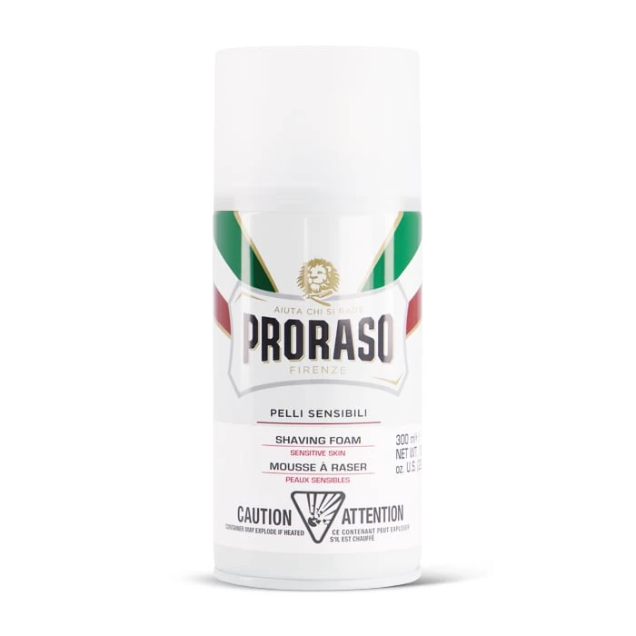 Proraso shaving foam forms a rich lather to hydrate, soothe and protect delicate skin.