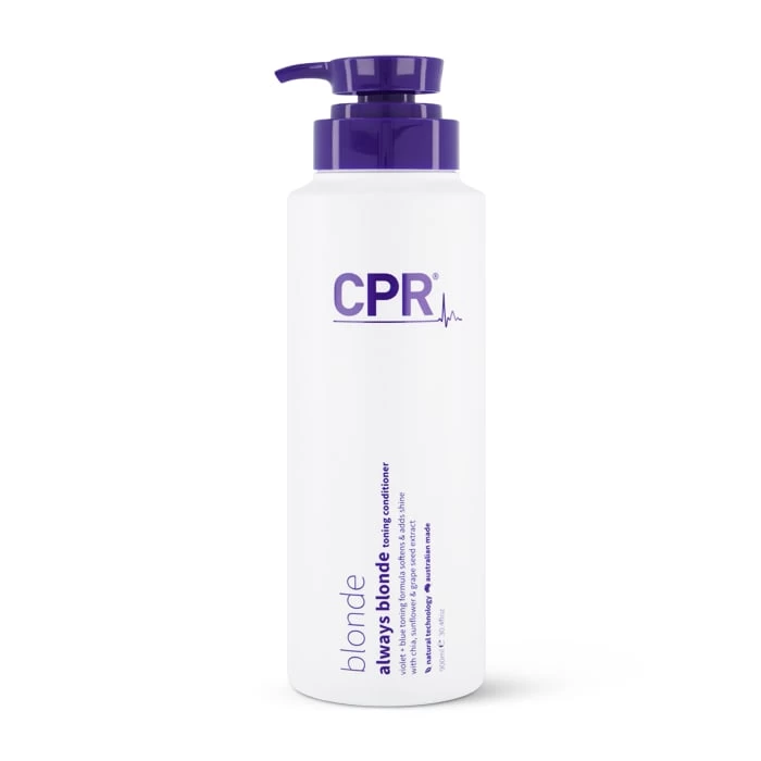 Vitafive CPR Always Blonde Conditioner eliminate unwanted yellow brassy and gold tones. It repairs and strengthens hair from inside out. It reduces hair breakage by up to 80% binds moisture inside for long lasting condition, softness and shine whilst balancing the hair and reducing oily scalps. Safe for keratin straightening and hair extension systems.