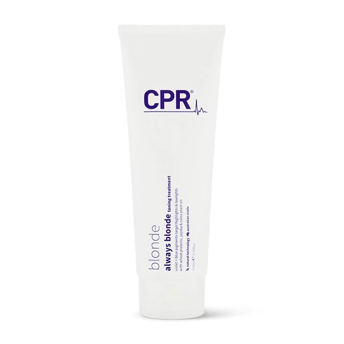 Vitafive CPR Always Blonde Intensive Treatment eliminates unwanted yellow brassy and gold tones. It repairs and strengthens hair from inside out. It reduces hair breakage by up to 80% by binding moisture inside for long lasting condition, softness and shine whilst balancing the hair and reducing oily scalps. Safe for keratin straightening and hair extension systems.