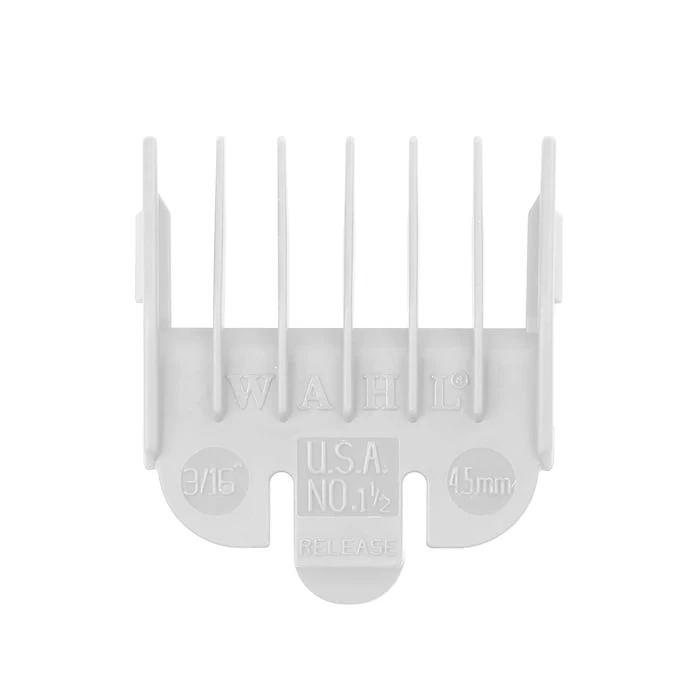 Wahl Clipper Attachment Guides Size #1 1/2 White is part of the Wahl clipper attachment guide combs series with a 3/16″ or 4.8mm plastic size. It has a secure grip that ensures that it does not slip off from the clipper blades while in use. It has rounded edges that make passage through hair smoother, giving the client a comfortable feel while receiving the service. The Wahl clipper guard attachments stay firmly secured to the blade and are designed to last long.