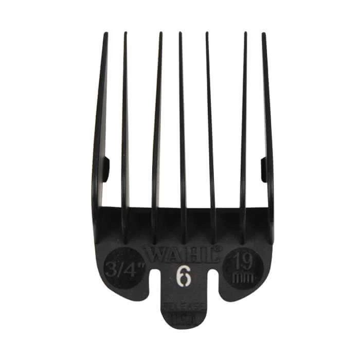 Wahl Clipper Attachment Guides Size #6 is part of the Wahl clipper attachment guide combs series with a 3/4″ or 19mm plastic size. It has a secure grip that ensures that it does not slip off from the clipper blades while in use. It has rounded edges that make passage through hair smoother, giving the client a comfortable feel while receiving the service. The Wahl clipper guard attachments stay firmly secured to the blade and are designed to last long.